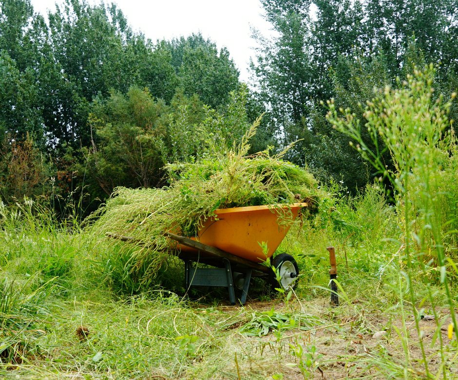 Our site contains several rows of trees near the road. In between each row strives to be shady elegance. But, like my hair in humid weather, it was extremely out of control. In need of a mower, Steve set out to reign in the saplings, low dangling banches and long grass. Using just a machete and a weed wacker he’s making great progress and bringing back some form of shady elegance beneath the trees.