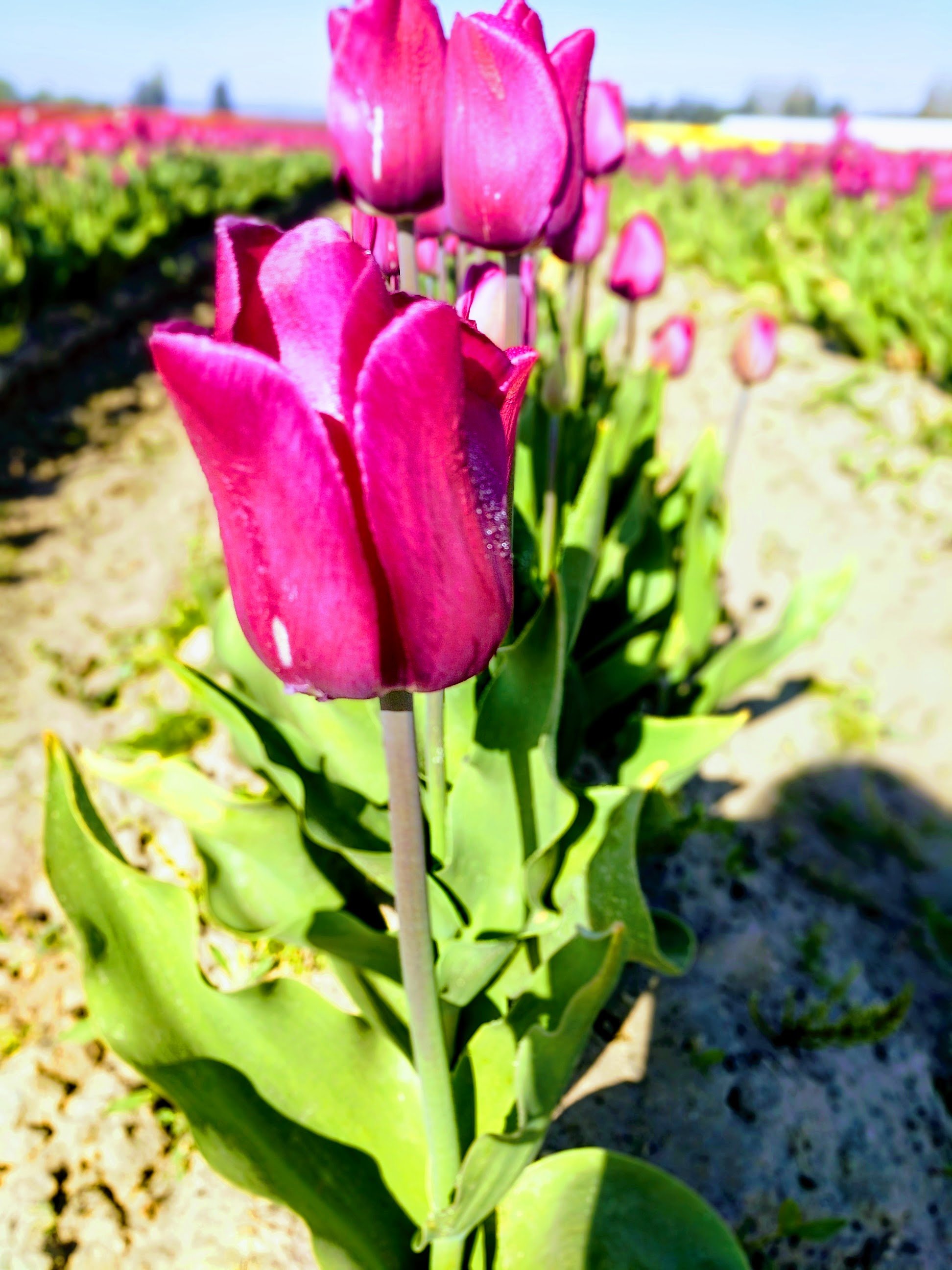 Spring is Tulip season and I’ve never seen so many colorful flowers in one place. While staying in Washington State, the big bloom was staring to unfold. We just happened to be about an hours drive away from the annual tulip festival. What a treat to see. I have to admit, I was like an excited kid being able to get up close to these delicate and colorful blooms.