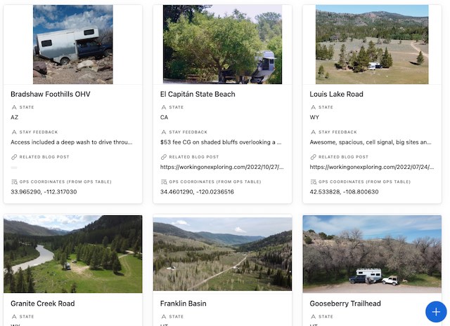 The gallery was built for not only our personal journal of newly discovered boondocking and parking locations but also to share. If we reference a location in social media or a YouTube video it’ll most likely be available in our database.