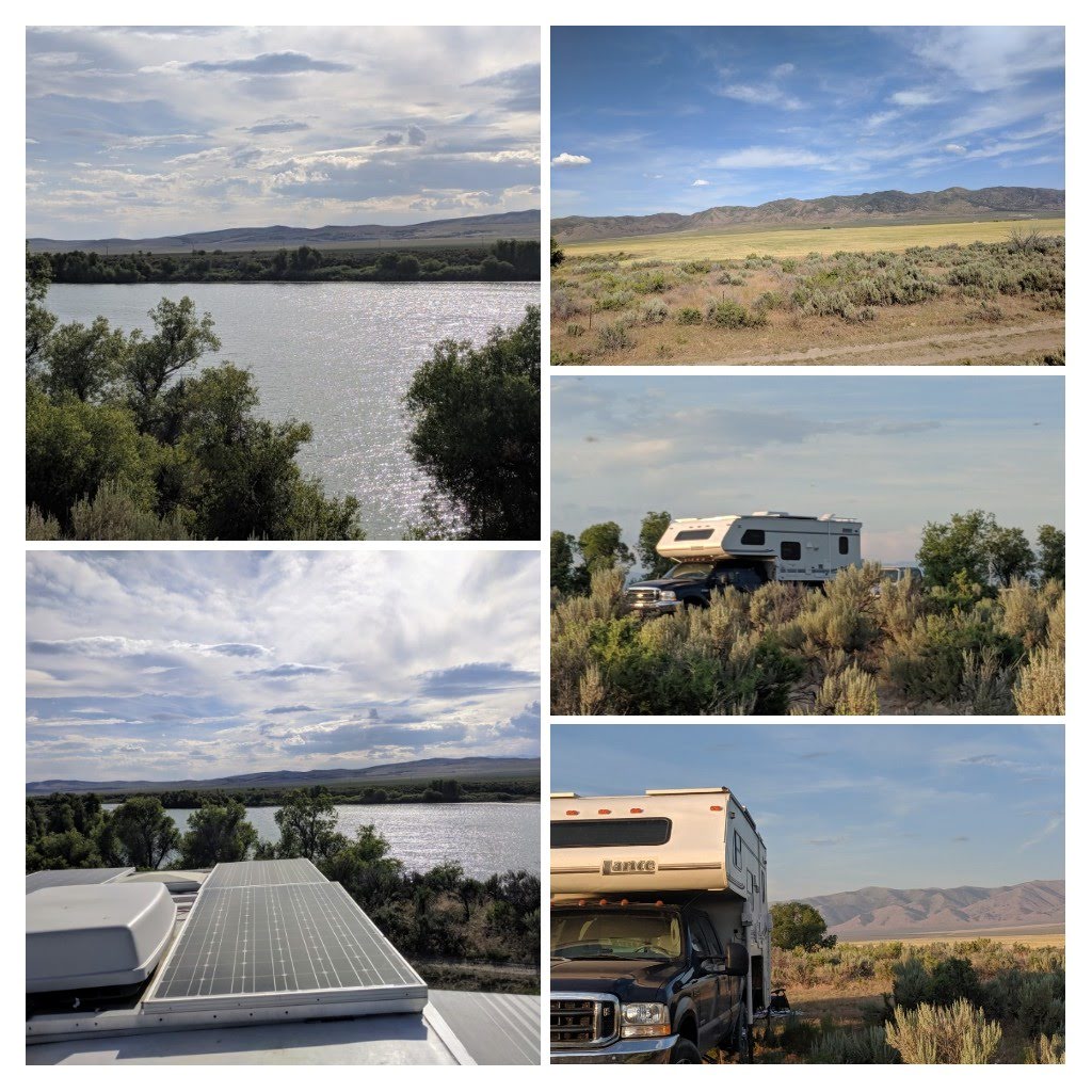 We wild camped out on Curlew National Grassland overlooking a reservoir. It was just the right driving time between Rawlins, WY and Twin Falls, ID area to allow us some time tomorrow afternoon for site seeing before we arrived at the Harvest Host Winery. Definitely quiet. Definitely dirty and dusty and no one had traveled that road in quite some time. The reward was a beautiful sunset.