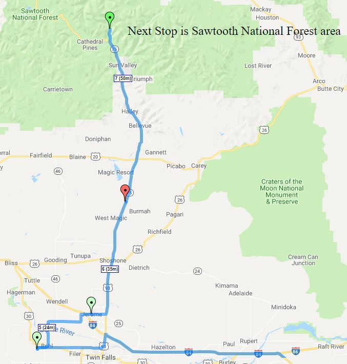 We left on Thursday the 11th and enroute to the Sawtooth National forest we made brief visit to the Shoshone Ice Caves. The history here was interesting and well documented…but is really just the tip of the iceberg so to speak of the volcanic activity that formed this Snake River Plain area.
