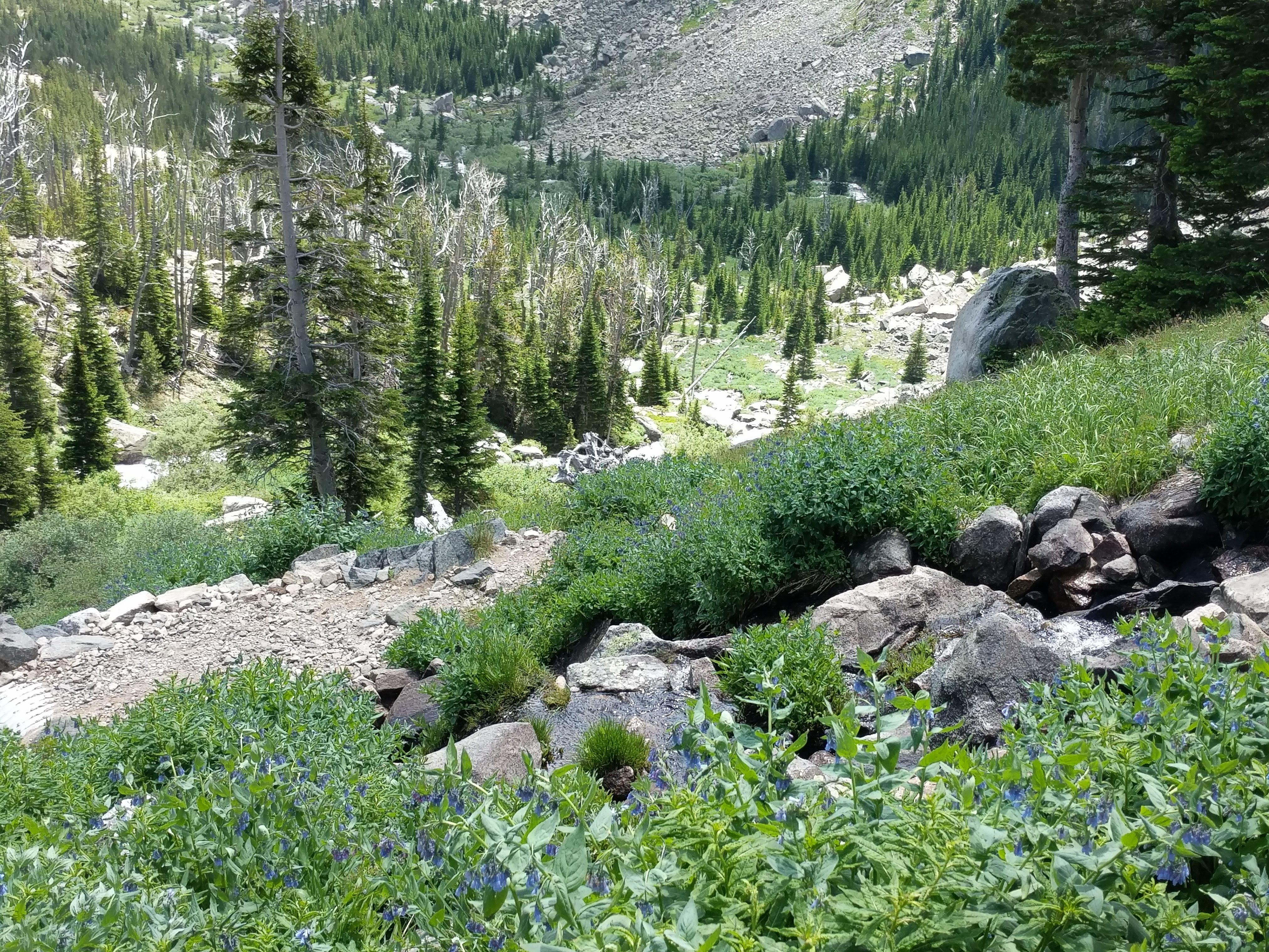 The climb was a brutal for me working with the elevation and adding another 1492 in elevation gain; water and breaks were both my friends. Bridge, water, flowers, quiet, falls, and a cool breeze are ingredients for a trail worthy of the challenge.