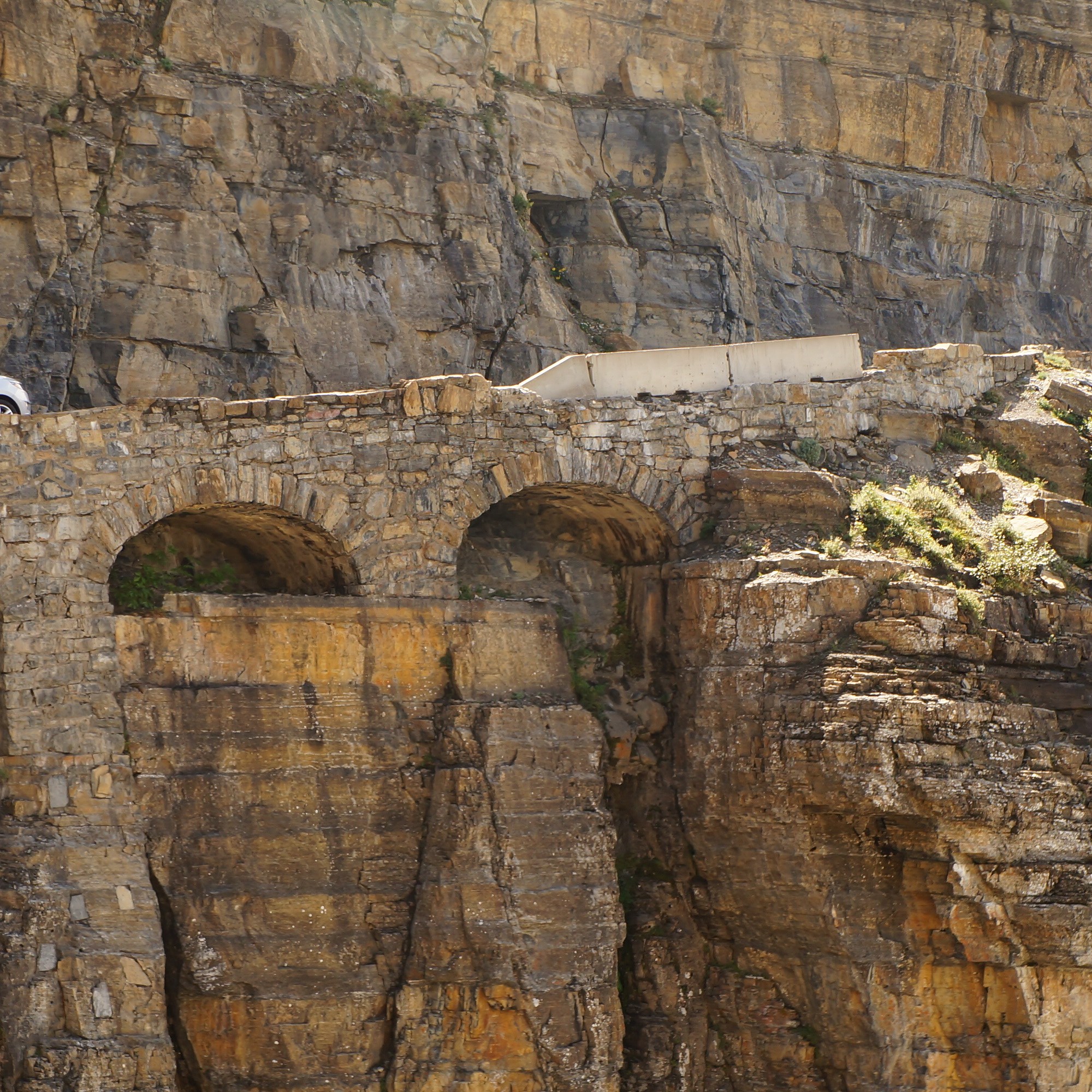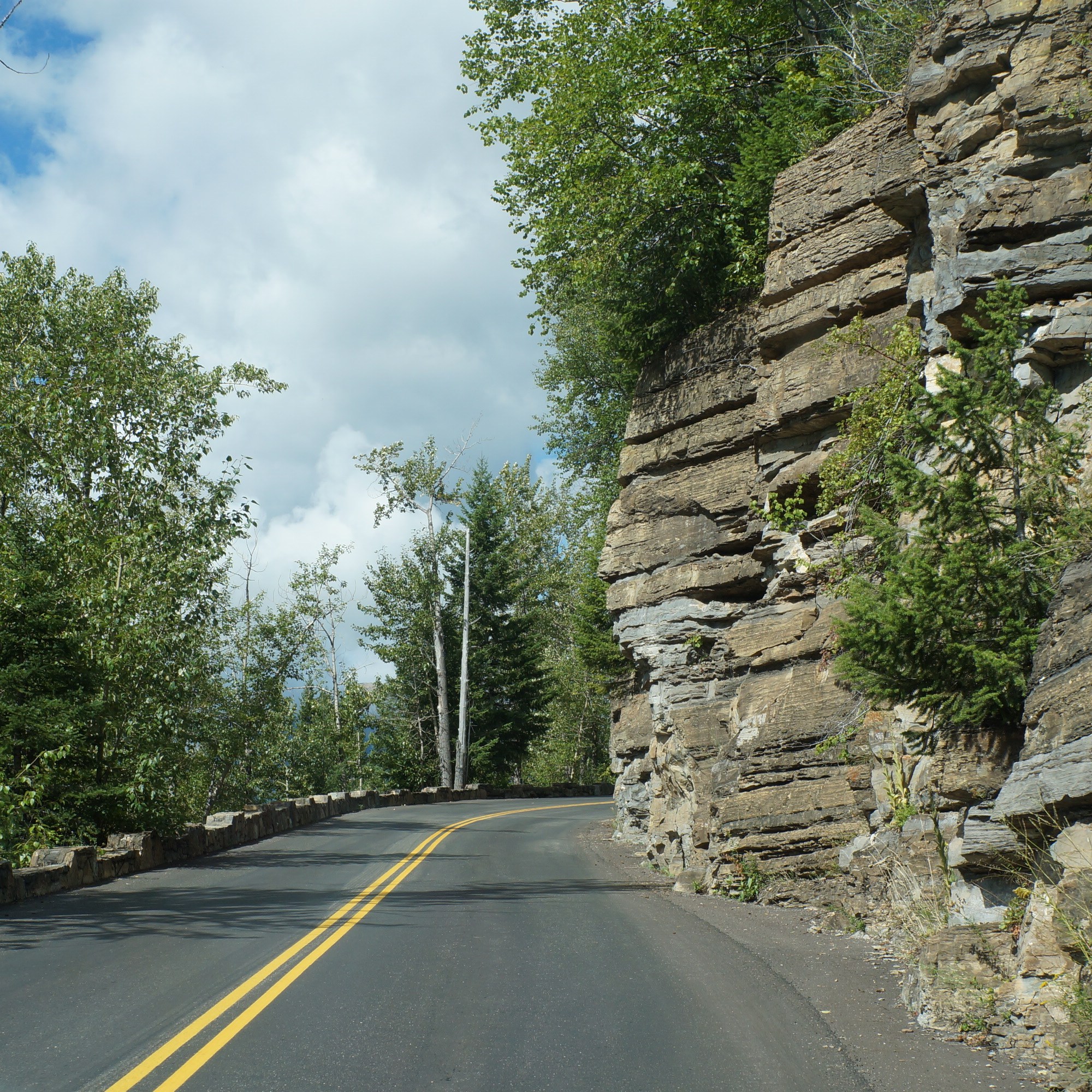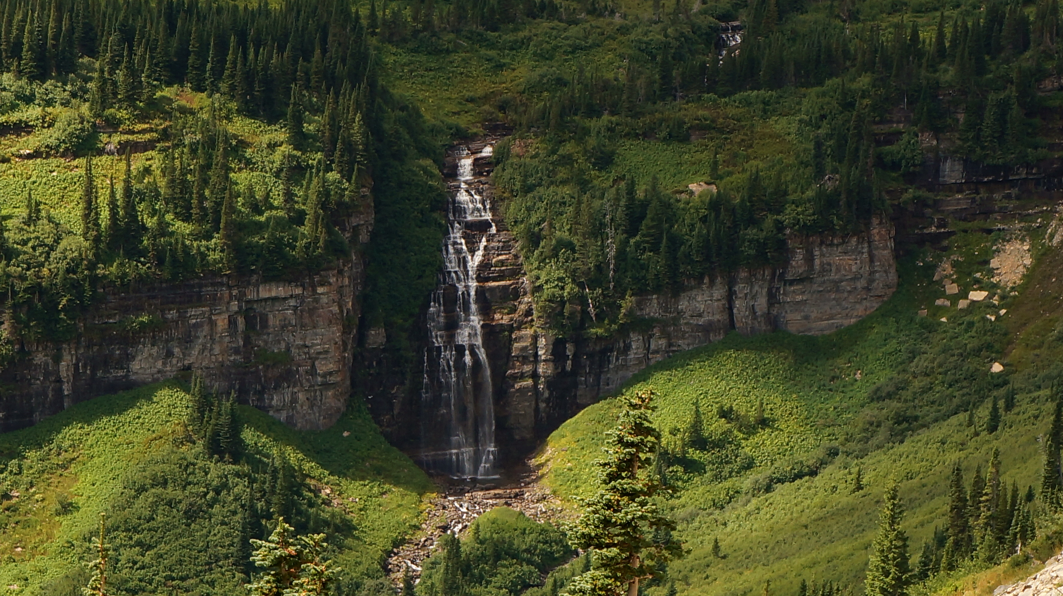 We made it to Logan pass and the visitor center was crowded with no parking; calls for securing a roadside lunch stop down the other end of the pass and through a tunnel.  Weeping wall waterfalls came into view around nearly every turn.
