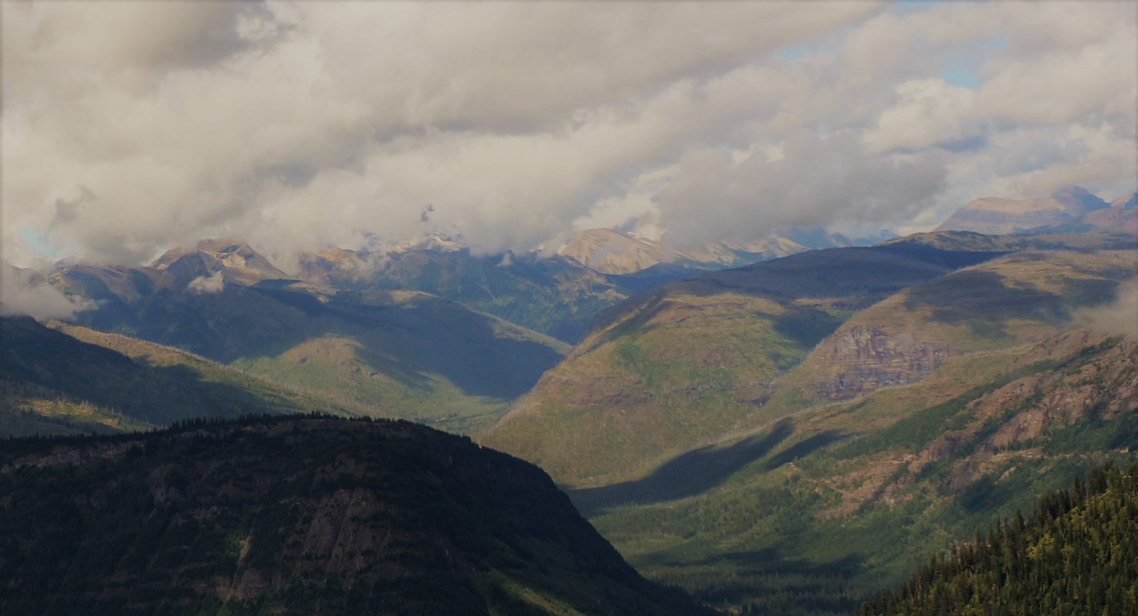 The road proceeds upward to The Loop and a view Heavens Peak.  Although our elevation wasn’t extremely high we did climb above the clouds and as the cloud cover broke it created a serene valley view.