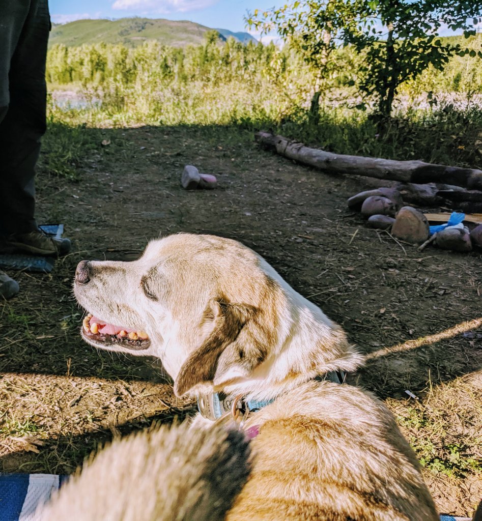 Looked forward to just being back at camp (https://workingonexploring.wordpress.com/2019/08/28/camping-outside-of-glacier-national-park/), near rivers edge, quiet nights, campfire) and a nice dinner.  Who needs date night when you have a happy pup, nice view and can sip wine by the fire as the sun sinks for the evening?