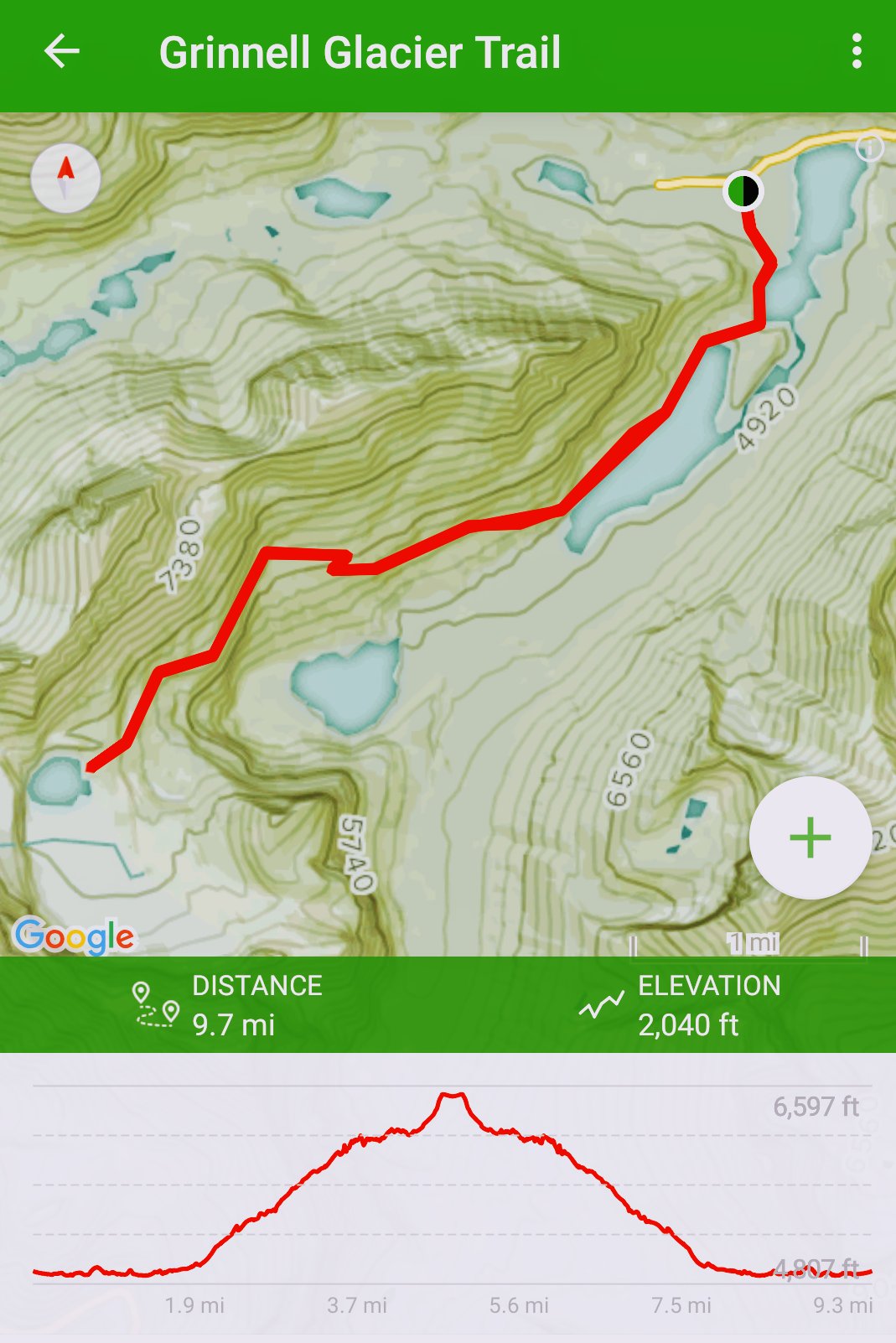 The road into Many Glacier was TERRIBLE. The trail head parking lot was very full but we squeezed in a roadside spot, found the restrooms, and got ready to head out. All Trails states 9.7 miles; I recorded 10.3 total. Not sure if that was just additional wandering or the 9.7 doesn’t include the short nature trail at the very beginning of the route.