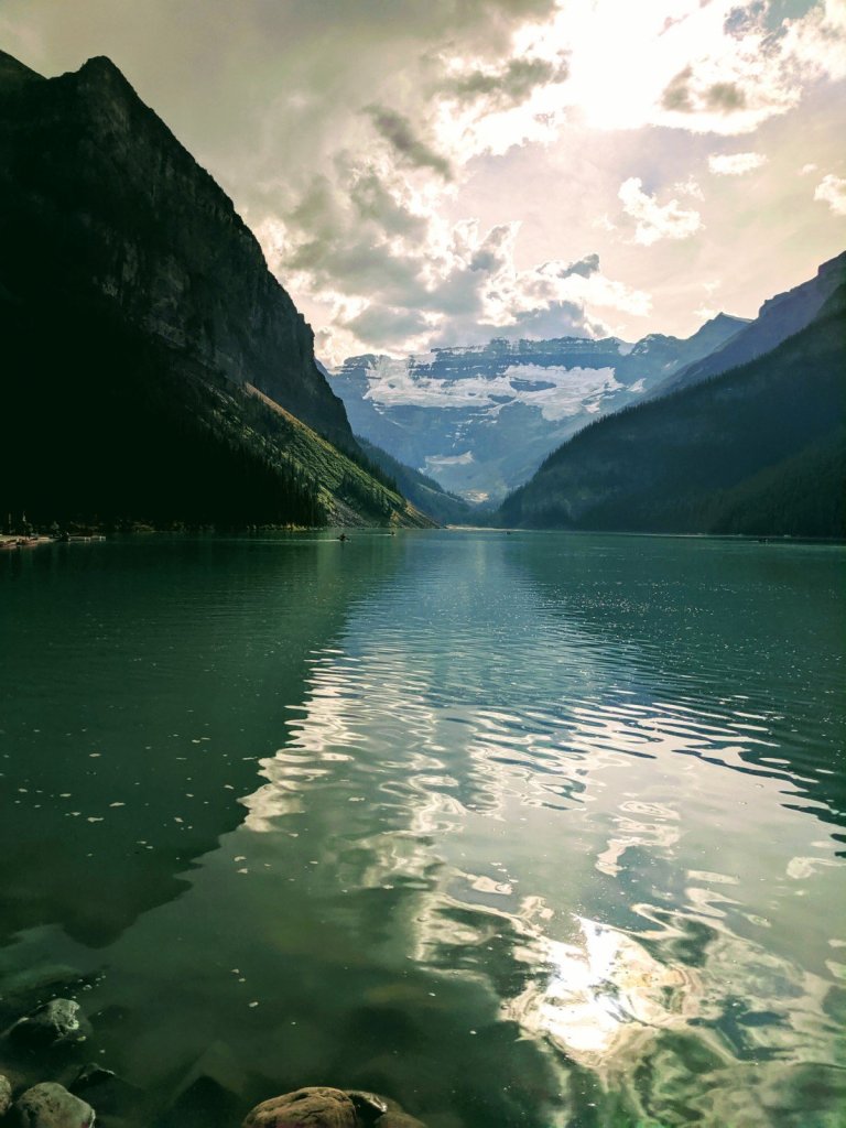 By 8:00 AM we parked in a 3/4 full lot and headed out to join the lake edge selfie crowd. Was it pretty? Turquoise? Worth It? Of course. The lake sits under Mount Victoria (3464 m), and both the upper and lower Victoria Glacier. It’s the first glacier fed lake my eyes have enjoyed.