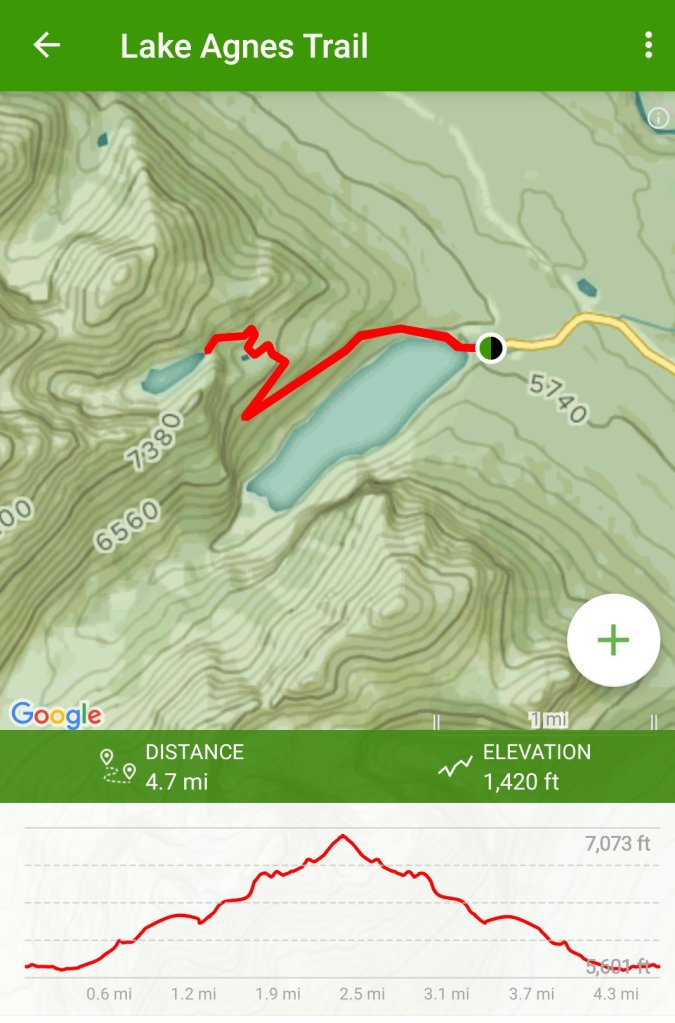 Today is about lakes and the Lake Agnes trail fit the bill. It’s a steady, mostly easy incline up 1420 feet in elevation gain per AllTrails.