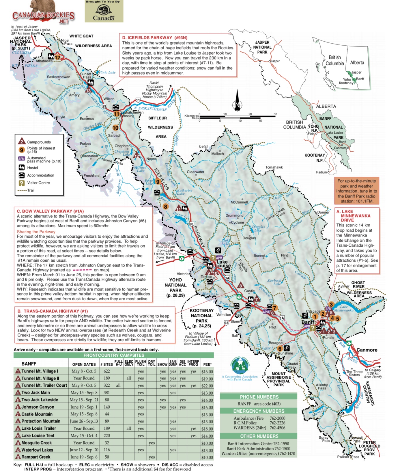 Canadianrockies.net park map
