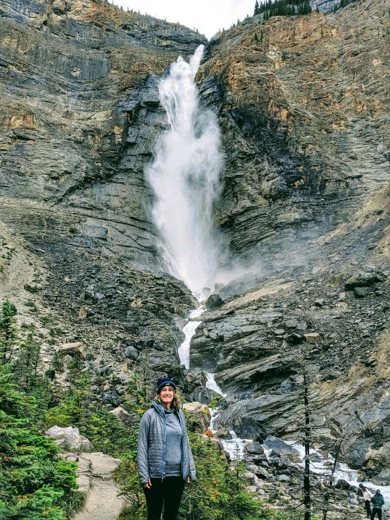 Our 2nd stop was driving up to Takakkaw Falls, one of the tallest falls in the Canadian Rockies. There’s an easy walking path from the parking area to the bottom of these thundering falls. The falls, fed by Daly glacier which is fed by the Waptuk icefield, are 254m high!