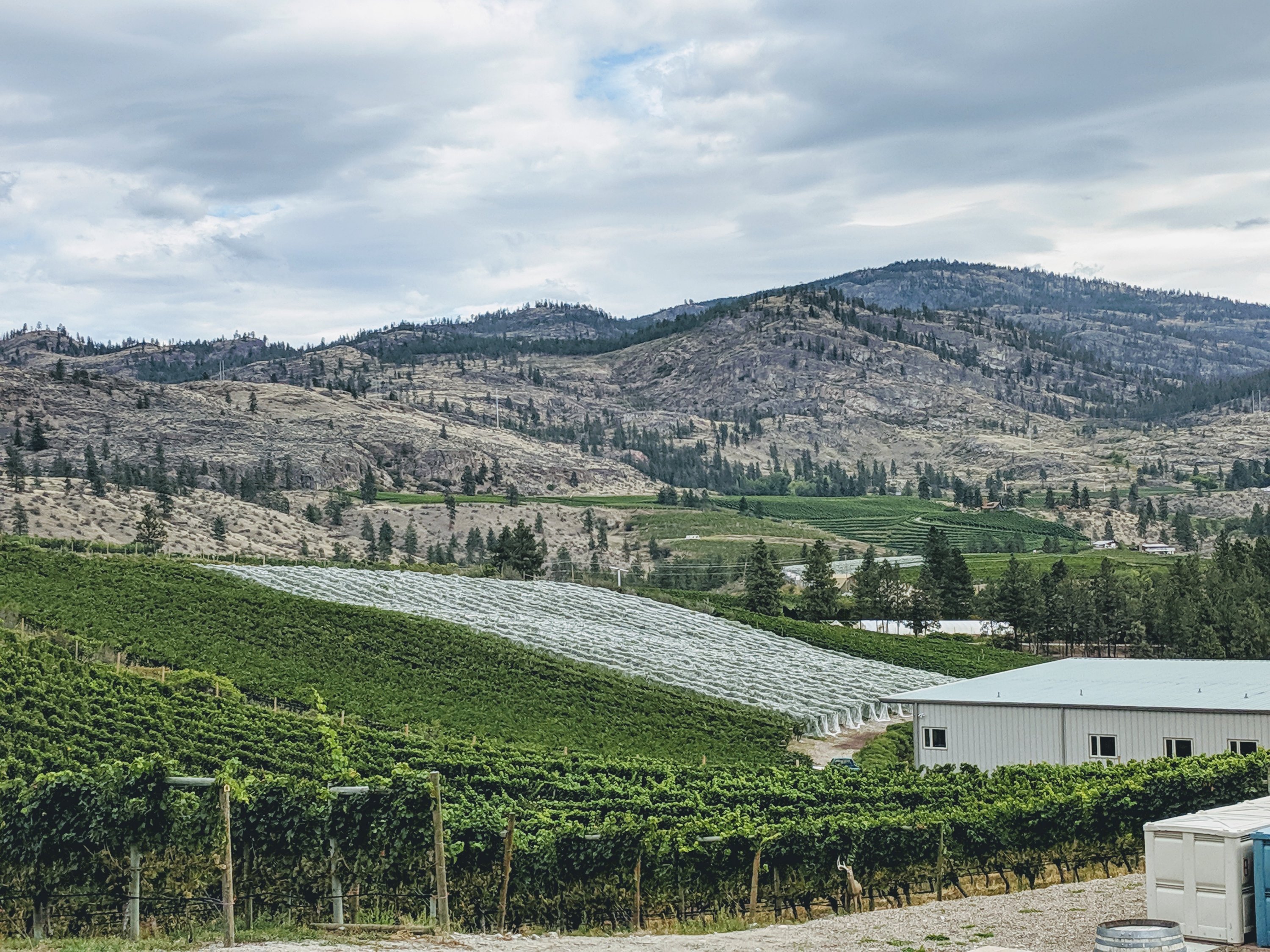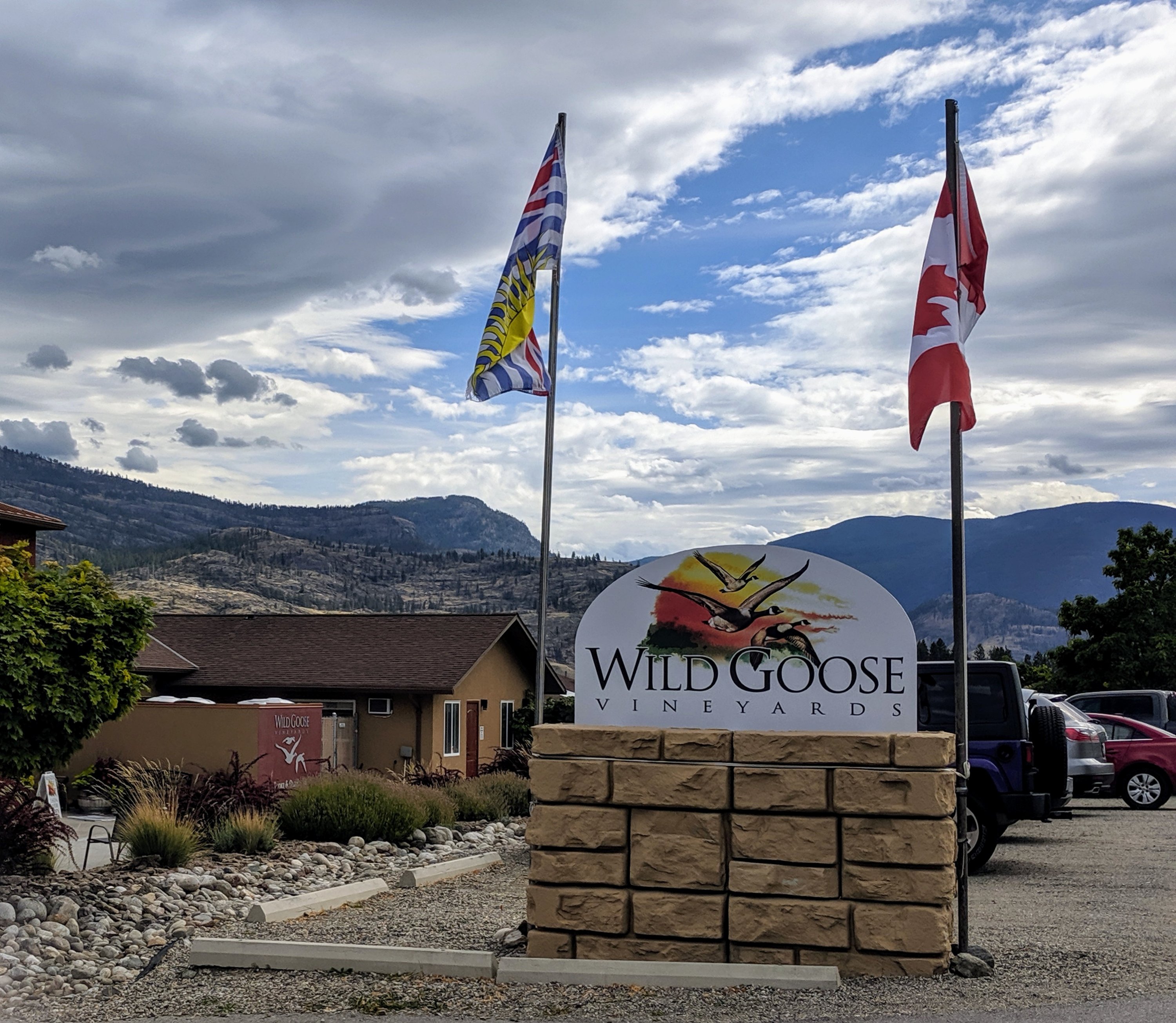 Making random pit stops is part of the challenge during drive days. Always want to have a slide of time to venture off the beaten path and see a little more of the area we’re driving through. An ad hoc stop before we leave beautiful Canada is lunch at a winery. If you drive through Okanagan valley area you must partake! My random pick (timed to feeding the driver) put us at the south end of the valley. Wild Goose Vineyards and Winery. They serve lunch with a menu of slow smoked meat dishes…yumm. They’re known for the white varietals and all I tasted we’re outstanding.
