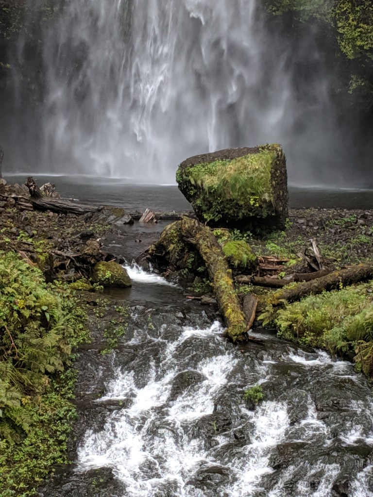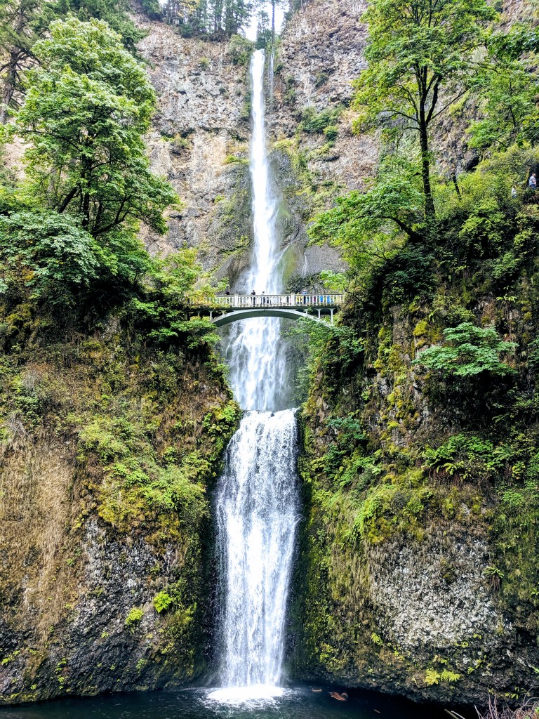 Multnomah Falls is accessible from HWY 84 using exit 31 and has plenty of parking. If driving along 30, the parking area is very small and congested. The falls are 611′ tall cascading into two tiers of pools. The mossy rock was an interesting focal point. We walked up to the Benson Bridge spanning the tier’s and getting a little closer to the massive 542′ tall top tier. You can continue hiking from the bridge up to the top of the falls.