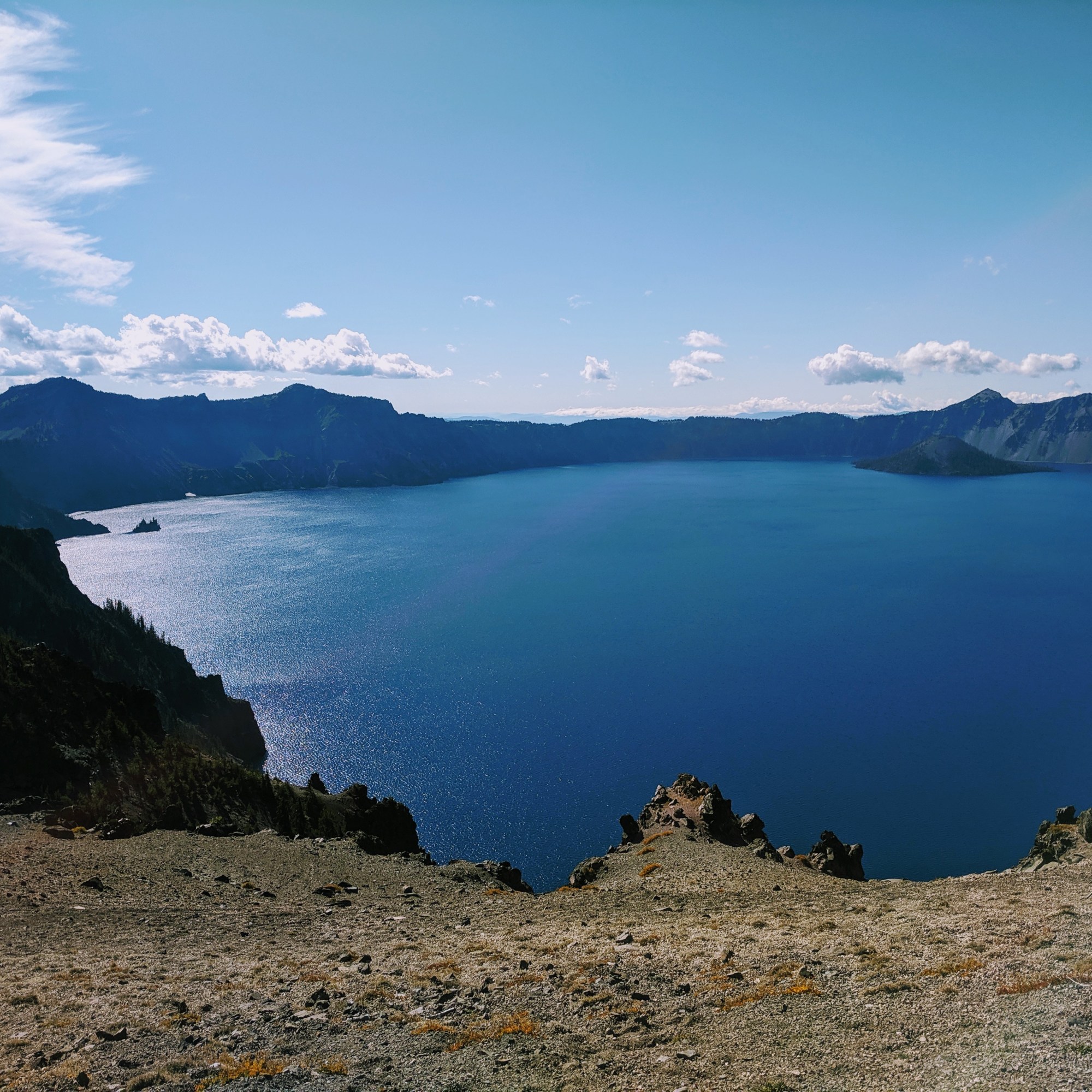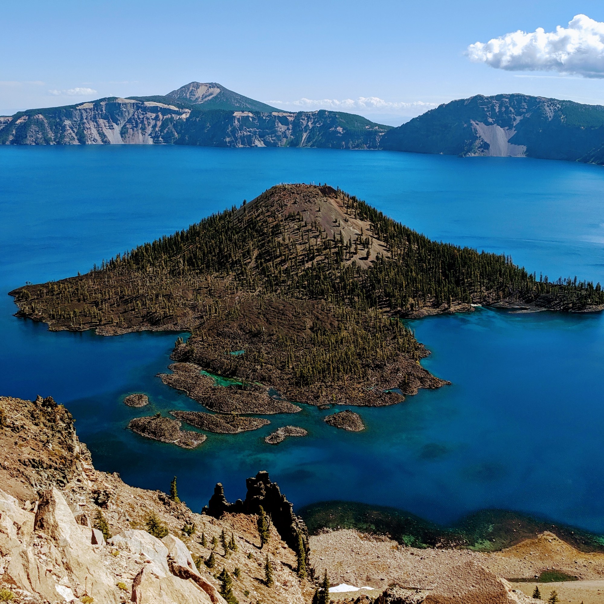 Why what mightly blue depth you have! A different view of volcanic landscape from Mt. St. Helens is found at Crater Lake. 7700 years ago an eruption blew off the mountain peak and left a basin that has been filled over time. At 1943 feet deep, this blue lake is the deepest lake in the US. The best view was at Watchman Overlook where you get a closer look at Wizard Island.