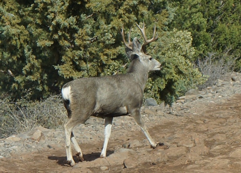 We encountered a doe and 4 point buck on the way up. They jumped out to snack across the road just as we drove around a bend.