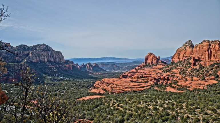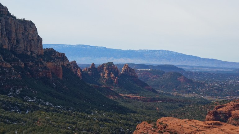 Due to the season the road is closed at the 4 mile marker which is at the vista. In warmer weather you can continue over the pass to the I-17. On our visit, There was mud and unmelted snow making the drive even more interesting.