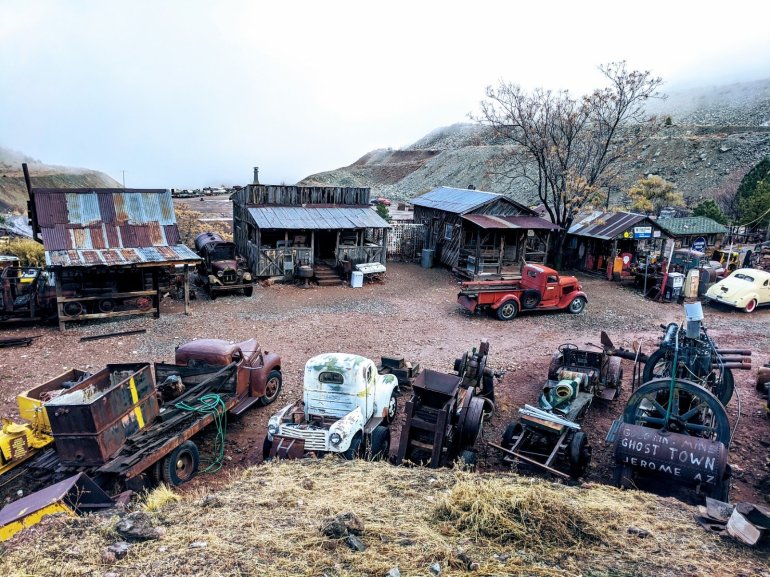 Jerome, AZ sits up in the mountains with gorgeous views which eluded us for the day. It’s a winding drive and I can only vouch for the winding portion.