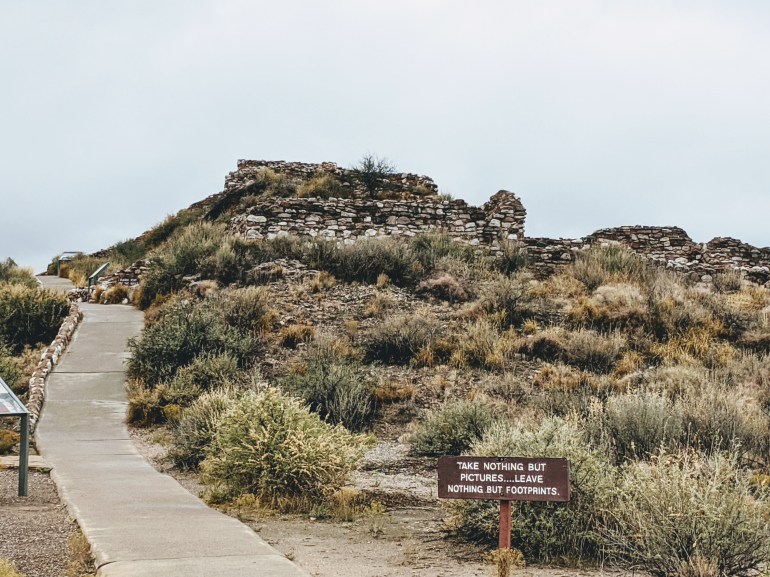Composed of 110 rooms some 2 or 4 stories tall; the buildings were constructed with rock and mud. Overtime, the village sprawled as their population grew. Eventually they moved on and abandoned this site and others; most likely following nature and finding resources to live on.