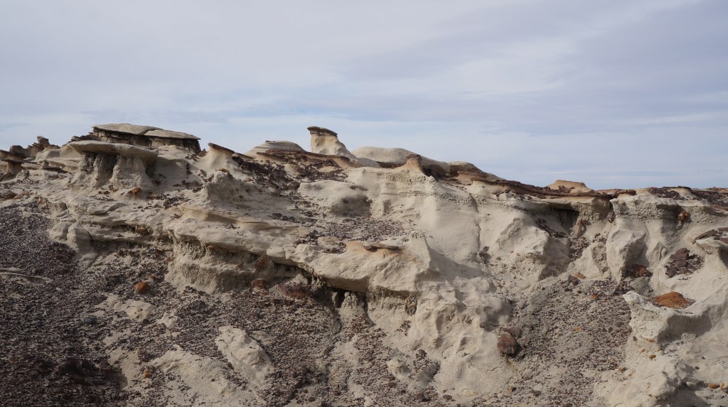 Where is there an area of weird, alien looking landscape that we’ve never heard of? In New Mexico, of course. Bisti Badlands wilderness is in the northwest part of the state and is managed by the BLM.
