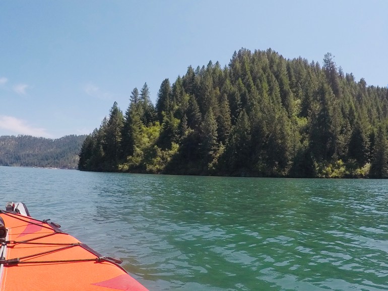Our first kayak outing of 2020! It almost cost us a $72 ticket, but the sheriff was feeling generous this holiday weekend. As we drove into Idaho we were watching for watercraft inspection stations and never saw any. Once we got to the reservoir we looked again for posted notices and found none. Not seeing any indication that a permit was needed, we launched the kayak. The sheriff was only 15 minutes behind us. Fortunately, she allowed us to paddle back in and purchase one at the marina area rather than issue a ticket. Whew!