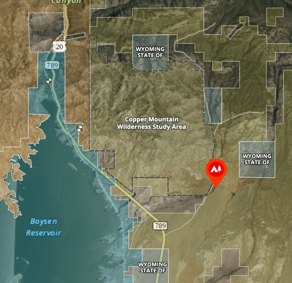 Afterwards, it was time to head towards an overnight parking spot. I was aware of the Boysen Reservoir which has a few state campgrounds but for a simple overnight dinner and sleep, we prefer to locate a boondocking spot. Nice to find BLM or USFS area close enough to the highway to be a quick find but also far enough off the highway so it’s quiet. Even better if it’s a rough road so we know we’d most likely be san company.