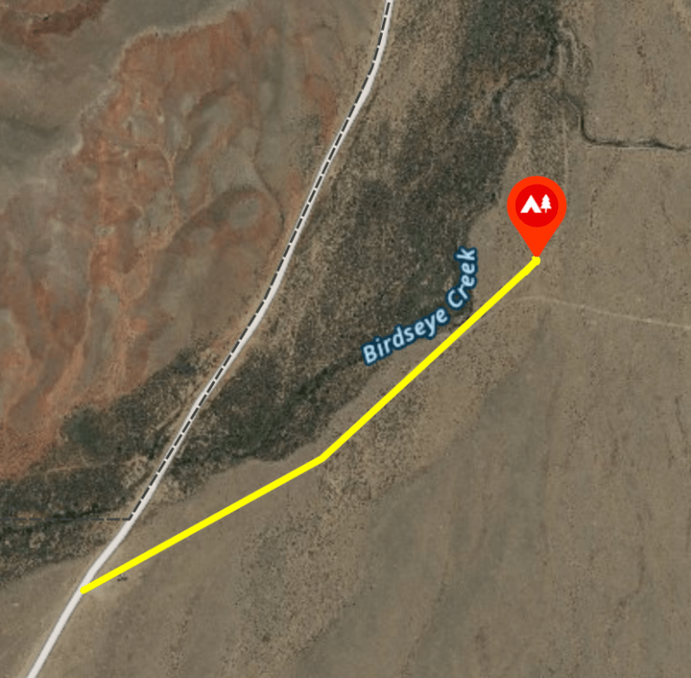 I could make out the dirt track turnoff we’d need to take off of Birdseye Road. Which was good. Our google maps navigation had us continuing on the main road and we would’ve missed the turnoff. Using my OnX Offroad downloaded map of the area kept us on track.