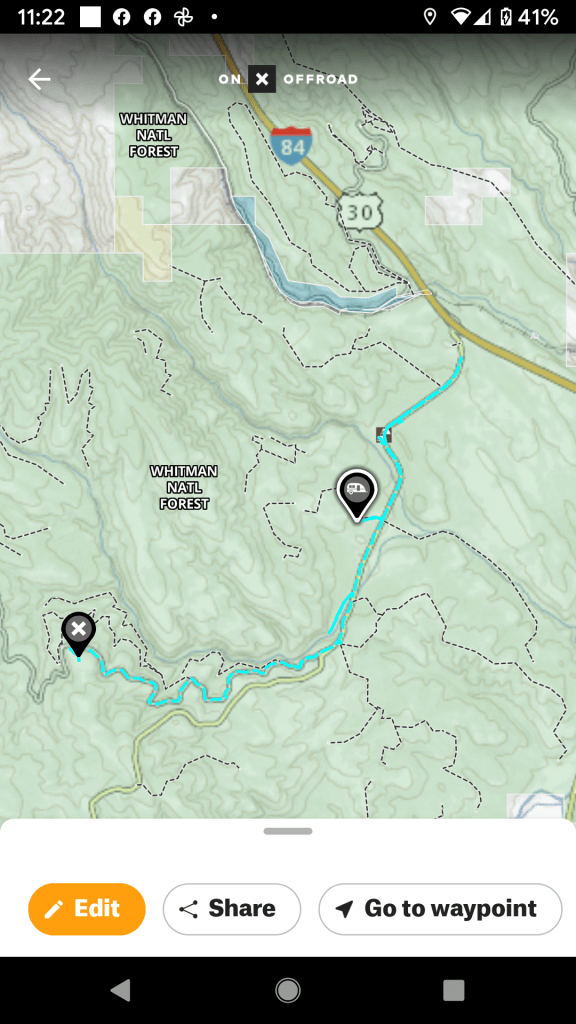 I spotted this area located not far from the I-84 using two tools. The first was iOverlanders; an overlanding mapping tool popular with campers looking for wild camping. The area only had one review (usually a plus in my book) and was convenient.