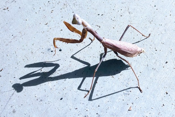 We periodically find a praying mantis in the yard. This particular year we found this one several times in the front courtyard.