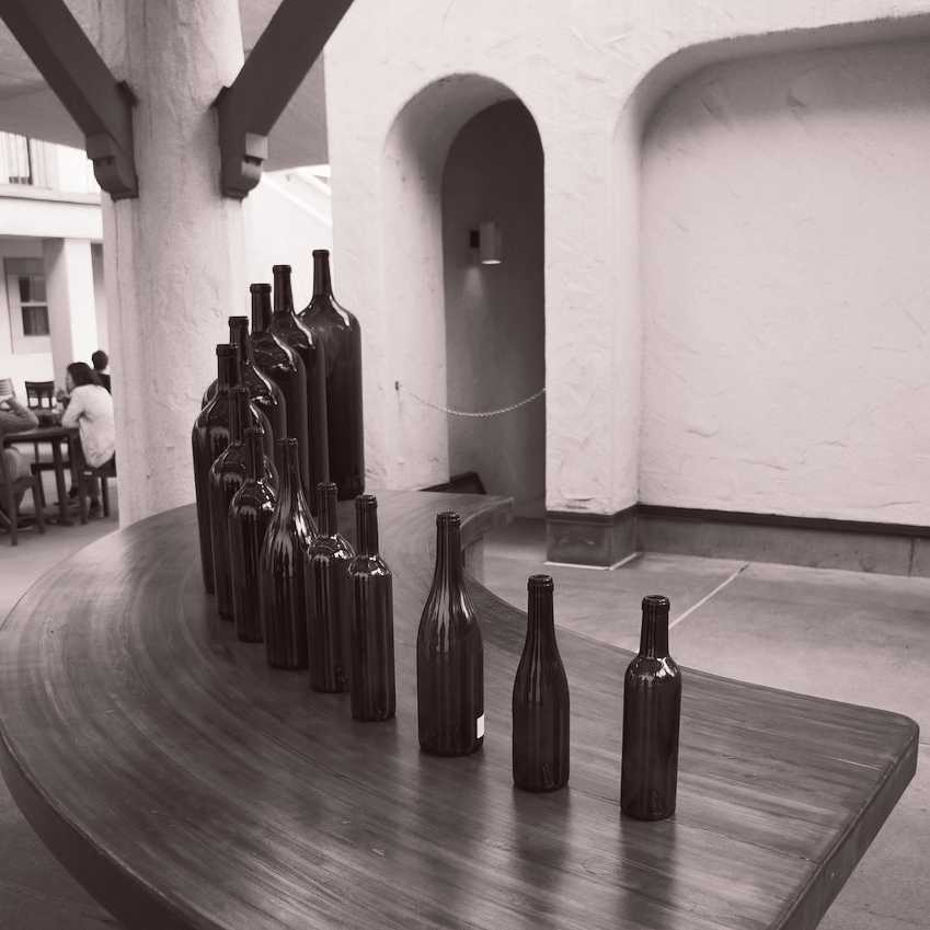 My favorite picture of this trip was capturing our reflection in this stair stepped wine bottle collection.