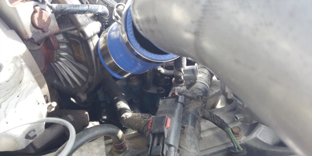 We headed out and after driving just a few minutes we heard a disappointing pow and woosh sound. The sound had me jump out of my seat. The replacement turbo hose had separated and it felt like we were back at square 1 with this turbo hose failure.