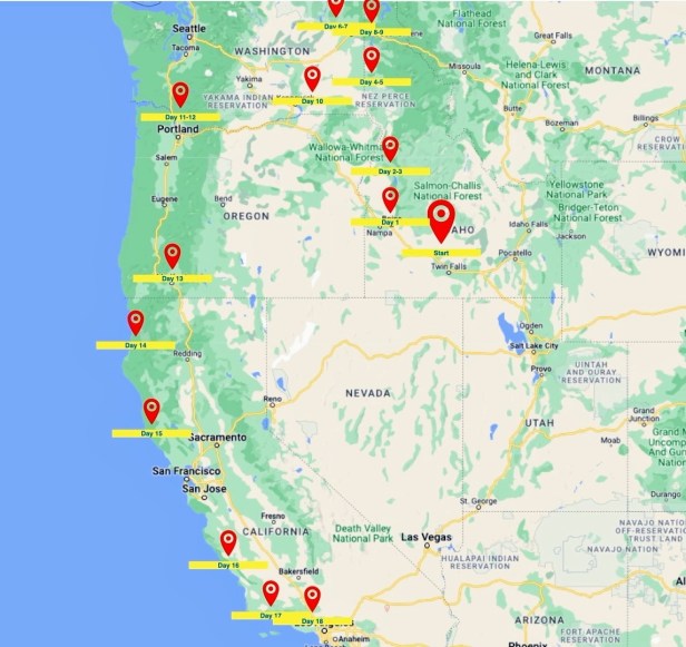 Lewiston area is our mapped Day 4-5. We stayed here 2 nights with night 1 at a Boondocker’s Welcome host and night 2 at a vineyard; This vineyard just happens to be one of my favorite Harvest Host locations.