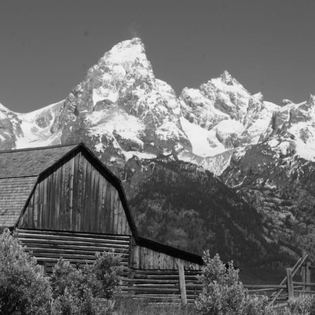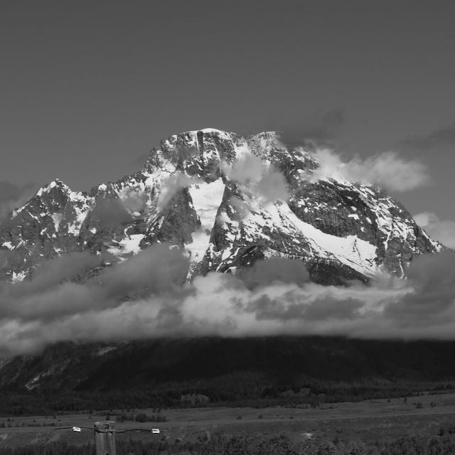 Snow, clouds, a grand mountain peak is all it takes to see that gray and white can be majestic. There’s no gloomy mood when my eyes take in these views of the Grand Tetons in Wyoming.