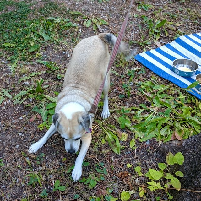 When he’s ready and energetic, we get to see his “come on” “let’s go” moves. Sometimes a rare dog friend comes along and he’ll spar play for about a minute! Rather than play, Cooper uses this move to communicate he really is ready to eat or to walk.