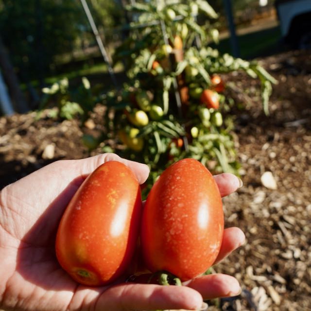 One plant only produced only a few turds and was a grape tomato variety called Grape Tami G. The beauty above is a compact roma called Little Napoli. It is a compact, determinate producer of small oval roma and is meant for containers! It stayed compact even when I transplanted it in the ground, but produced a nice bounty for the 1st round. I left many green fruit on it and hope round 2 ripens before it’s too cold.