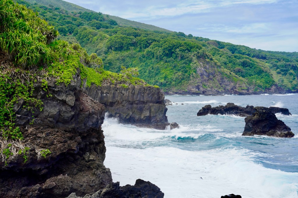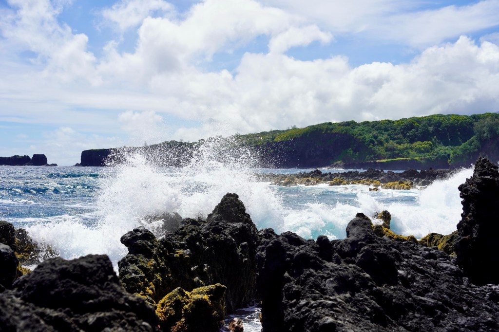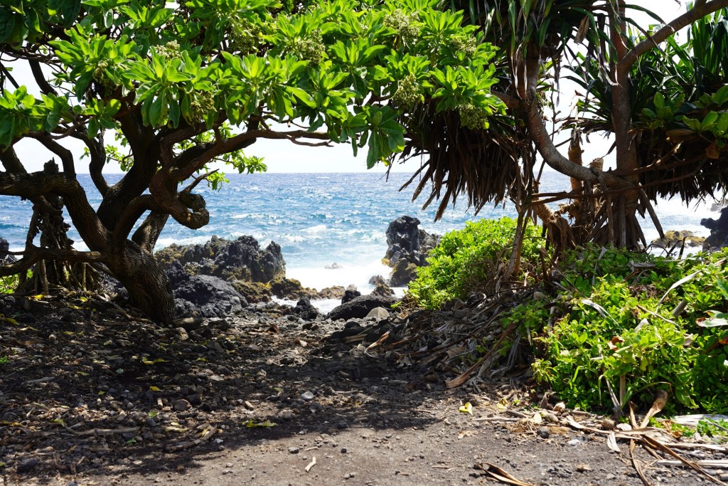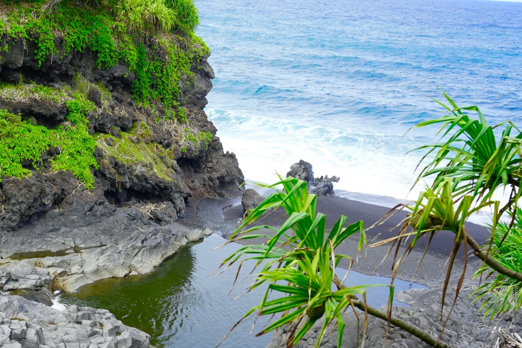 Blue, green, black, white all come together at the beach end of Haleakala National Park.