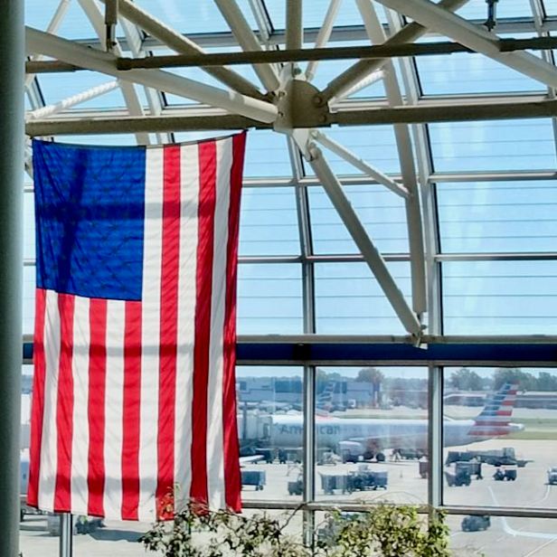 You have some spectacular images of the flag! All so unique. The flag hanging in the airport terminal against the plane tail is amazing. That took perfect timing! Your opening shot was great, too! Enjoy your 4th celebrations.