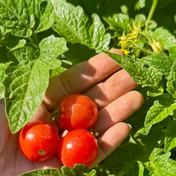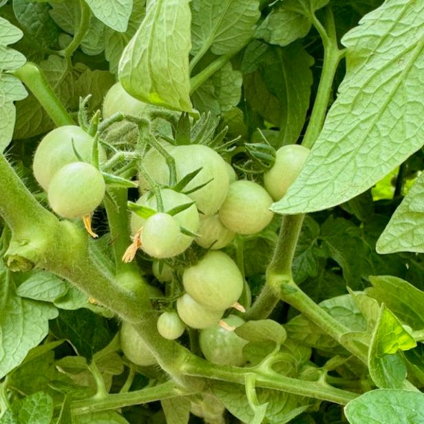 This is my grape tomato plant. It’ll be producing a bounty and what we’ve tasted so far, is so sweet and delicious right off the plant.